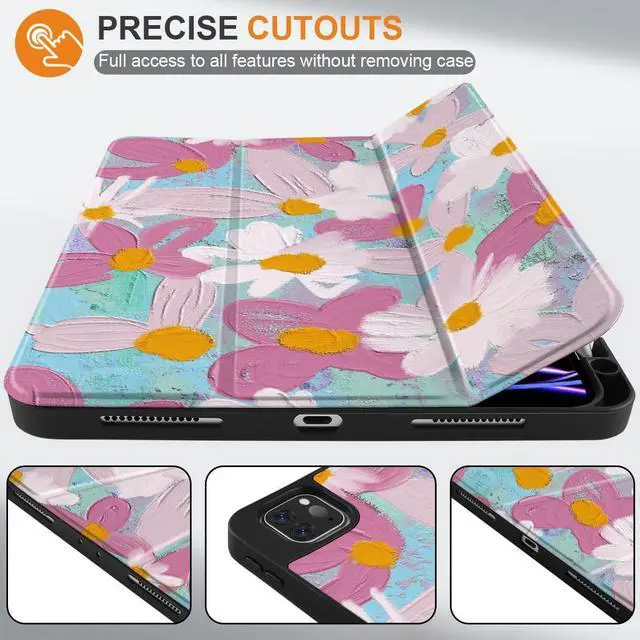 MEEgoodo Case for iPad Pro 12.9 Case M2 6th/5th/4th/3rd Generation 2022 2021 2020 2018, Protective Tablet Cover with Soft Back Shell for Kids, Art Botanical Floral