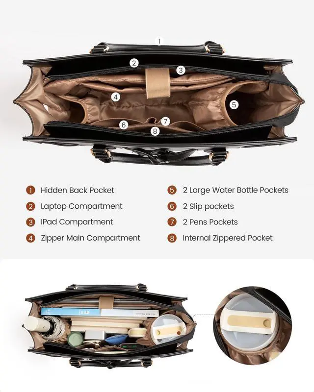 Elastic Pocket for Stanley CupThis laptop purses for women includes a dedicated holder for large bottles like the Stanley 40 OZ, keeping your drinks secure on the go. No more spillsstay effortlessly hydrated while commuting, working, or traveling.