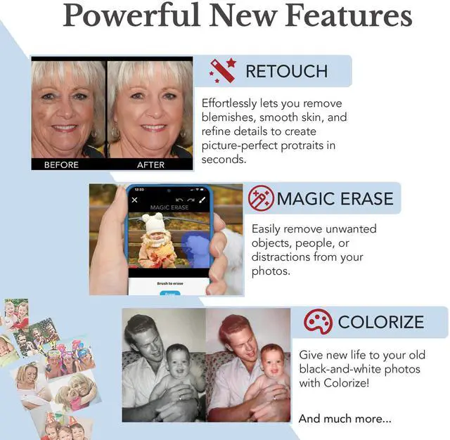 All-in-One Storage Solution: Our USB memory device keeps photos organized, has AI-powered batch scanning to digitize memories fast, and features Magic Erase to remove unwanted objects from pictures