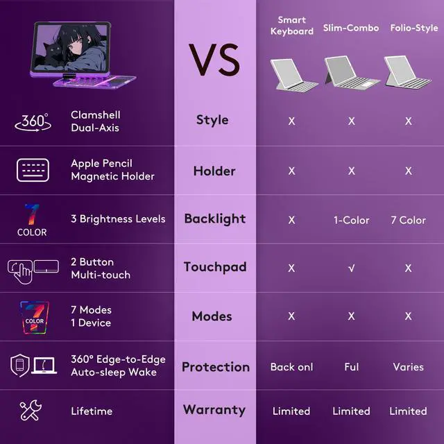 360° Rotating Stand & Multi-Angle Viewing: Enjoy full flexibility with the 360° swivel stand, offering 5 adjustable viewing angles. Whether you're typing, sketching, or watching a movie, seamlessly shift your iPad for maximum comfort and productivity in any mode.