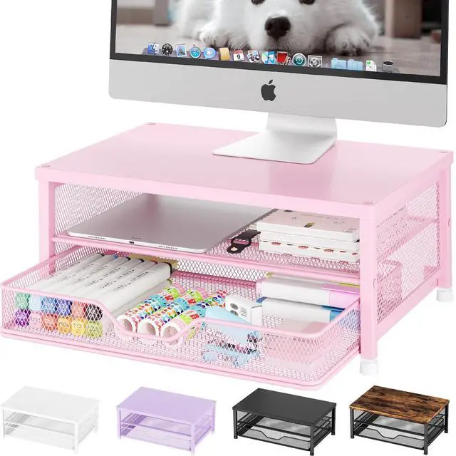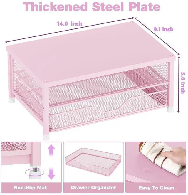 OPNICE Computer Monitor Stand Riser, Desk Organizers and Accessories with Drawer, Laptop Stand, Office Desk Accessories & Workspace Desktop Organizers Storage for Office Supplies (Pink)