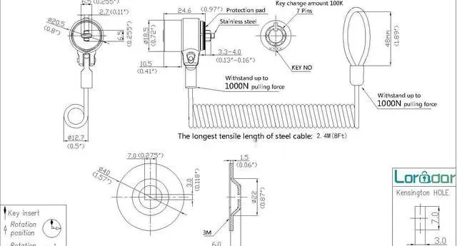 For those tablets without3*7MM security lock holes, there is a anchor plate lined strong adhesive, bound the plate to the hard surface of the devices, then insert the locking head into the plate with keys and loop the cable around a fixed object.
