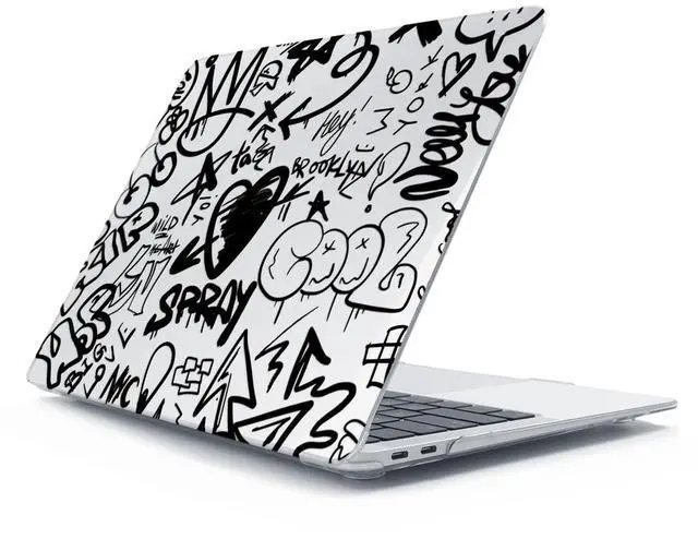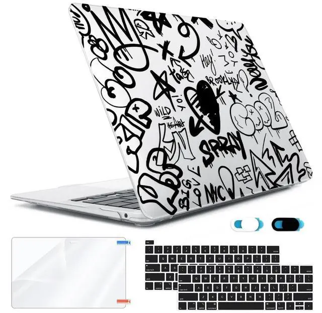 HOHAIYOO Compatible with 2022 M2 MacBook Pro 13 inch Case 2021 2020-2016 M1 A2338 A2289 A2251 A1706 A2159 A1989 with Touch Bar, Hard Case&Keyboard Cover&Screen Protector&Webcam Cover, Black Graffiti