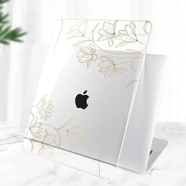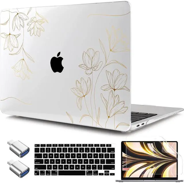TWOLSKOO for MacBook Air 13.3 inch Case 2021 2020 2019 2018 Release M1 A2337 A2179 A1932 with Touch ID, Plastic Hard Shell Case & Keyboard Cover & Type C Adapter, Gold Florals