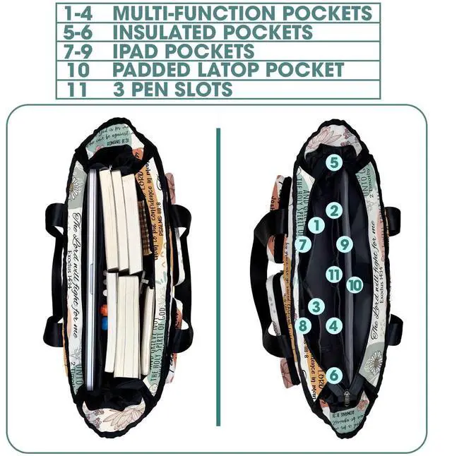 LOTS OF POCKETS: We put a lot of thought into making this bag super practical and comfy for you. Along with special pockets for your laptop, tablet, and pens, we've added plenty of other handy compartments. Plus, we'v