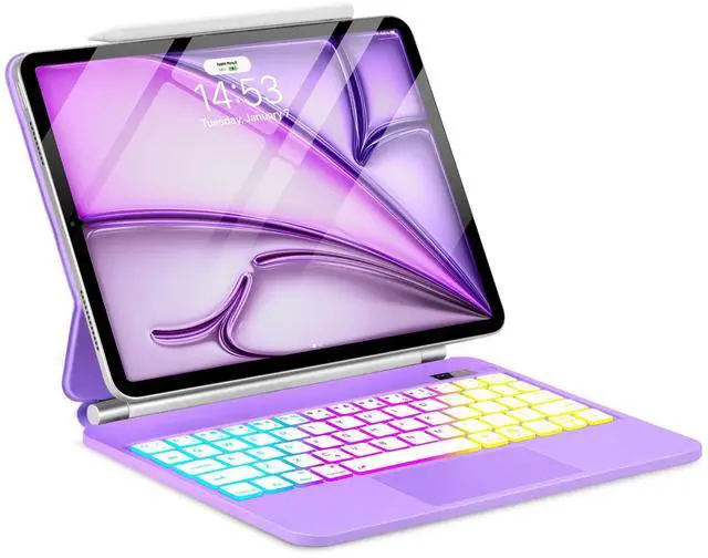 TabletKeyer Magic for iPad Air 11-inch M3 M2 Case with Keyboard Air 10.9" 5th 4th/Pro 11 4th 3rd 2nd 1st Gen, Trackpad Floating Rainbow Backlit TouchPad Keypad with Cantilever Magnetic Cover Purple
