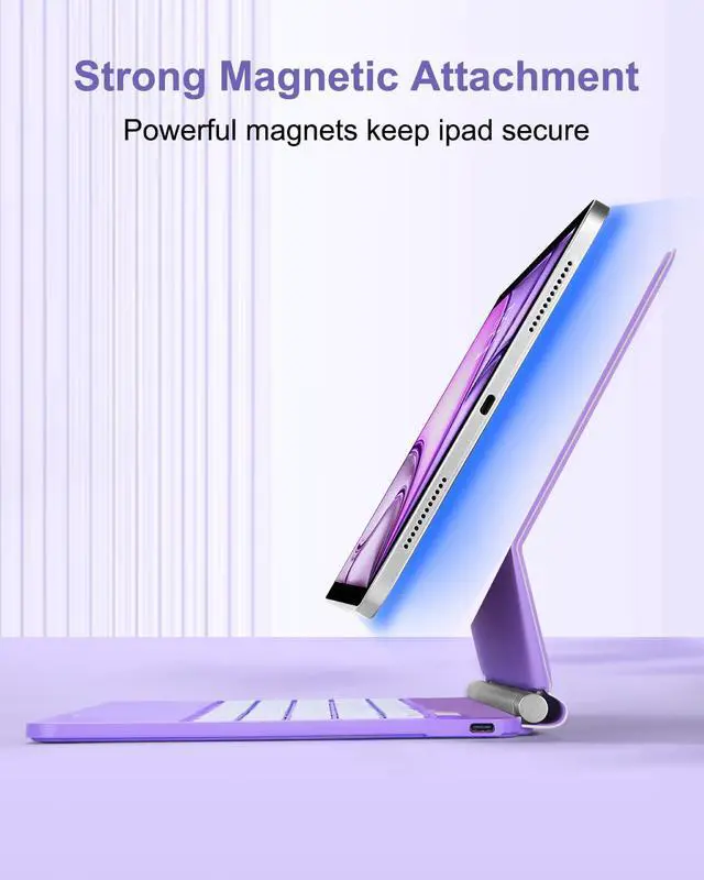 Magnetic Floating Stand, Multi-Angle AdjustableThis magic style keyboard case built-in strong magnets, which can adsorb your iPad firmly on the shell. The floating cantilever stand design allows you to easily adjust the angle of iPad. Whether it is typing, watching videos or making video calls, you can find the most suitable angle to meet the needs of different usage scenarios