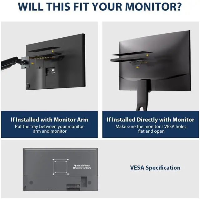 Easy Installation: Simple setup using the screws in your monitors VESA mount holes. Even when using a monitor arm, you can easily attach this rack between the monitor and the VESA plate for quick, hassle-free use