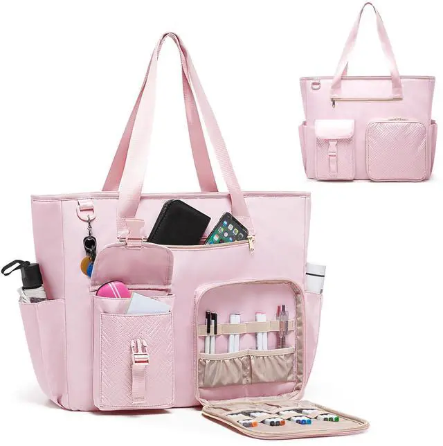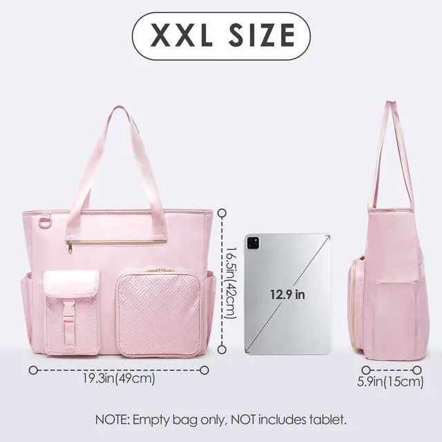 Fasrom XXL Teacher Bag for Work Women with 15.6 inches Laptop Compartment, Extra Large Utility Tote Bags to Hold Office Supplies, Work Files & More, Pink (Patent Design)