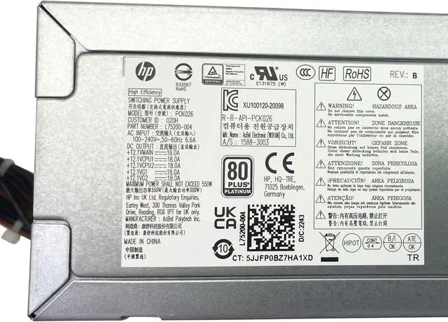 BestParts 550W Power Supply Compatible with HP Z2 280 288 600 680 800 880 G4/G5/G6/G8 Envy TE01 Pavilion TG01 TP01 Desktop PSU Unit L75200-001 L75200-004 PA-5551-1HA PA-5501-2