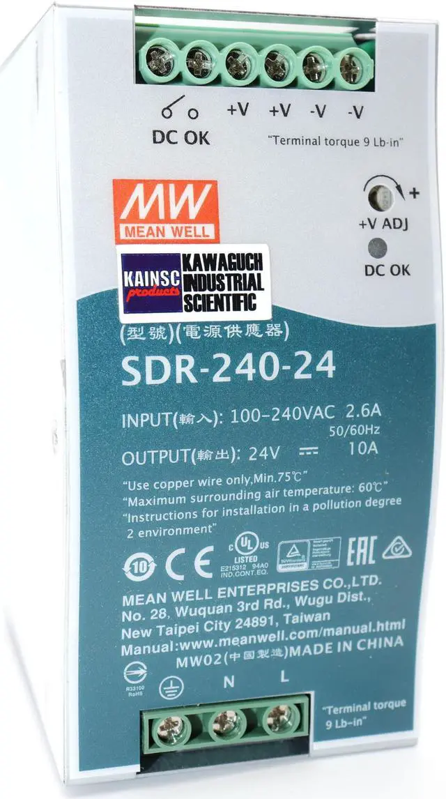 SDR-240-24 AC to DC power supply from MEAN WELL converts an alternating current source to a direct current supply.