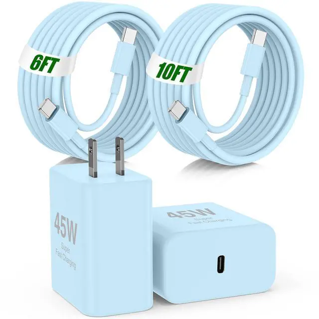 45W USB C Fast Charger for iPad Pro 13(M4)/iPad Pro 12.9/11 in 2025-2018,iPad Air M3/M2/5th/4th,iPad 11th A16/10th/Mini 7,iPad Charger Fast Charging Charger Block with 10/6FT C to C Cable-Blue