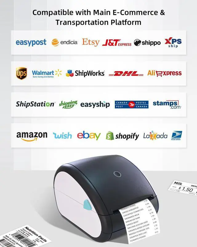 Suitable for Your Business: This thermal shipping printer supports Android and iOS devices for phones via Bluetooth connection, as well as Windows/Mac/Chrome/Linux are compatible for computers/laptops via USB connection. It installs an