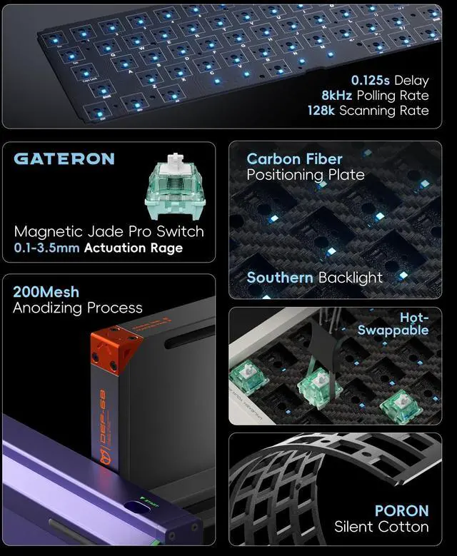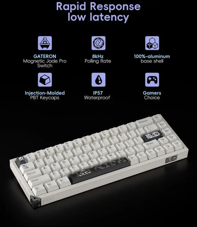 8000Hz Polling Rate: PIiifox DF68 Rapid trigger keyboard boasts an 8000Hz polling rate and 32K scanning rate that effectively reduces keyboard latency to a mere 0.125ms. Say goodbye to input lag and take control of speed, your esports performance will be fast responsiveness. React Instantly and Perform at Your Peak