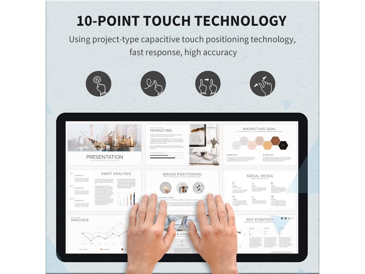 - 10 Points Touch Screen Monitor: the screen can be touched everywhere, use multiple fingers to zoom in and out of images no driver required, just like a tablet or touchscreen laptop, also can work with glove and adjust the brightness.
