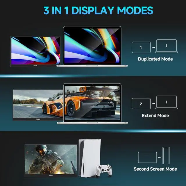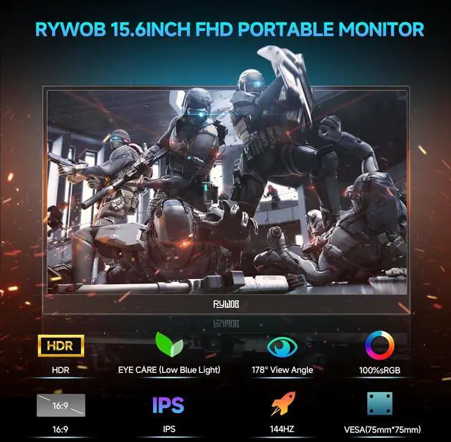 144hz and IPS Screen Gaming Monitor:15.6-inch portable screen with 1920*1080P resolution, 144hz refresh rate and IPS screen, support 178° full viewing Angle, can present accurate and vivid colors. Combining HDR, images and video presents realistic colors and stunning details. Flicker-free, eye protection makes it easier to work and play game