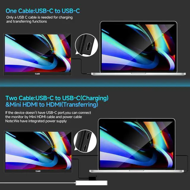 Wide Compatibility and VESA Mountable:Featuring dual USB-C ports and one mini HD