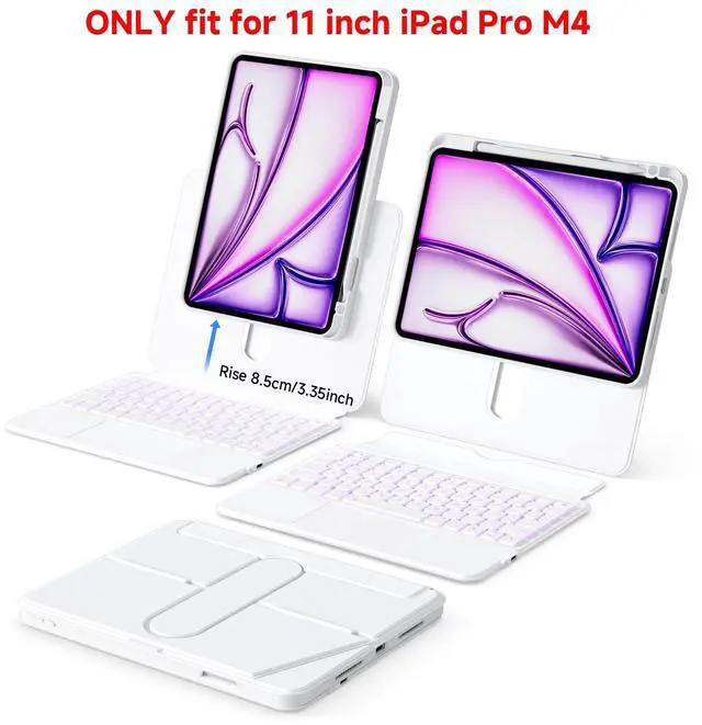 Detachable Magnetic Keyboard: Gesture supporting single, double, and triple-finger gestures for an intuitive and smooth interaction. Snap on/off like a magic keyboard iPad Pro 11in Case M4. Ideal for iPad keyboard with trackpad users needing desktop-level navigation.