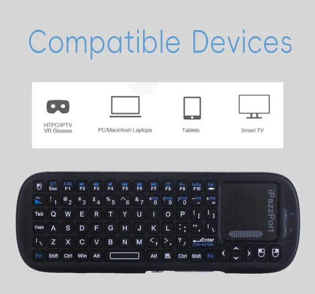 iPazzPort Mini Bluetooth Keyboard with Touchpad Dual-Mode 2.4GHz & Bluetooth Handheld Wireless Keyboard for Smart TV (Fire TV, Android TV), Laptop, PC & Gaming Consoles Palm-Sized, Plug & Play