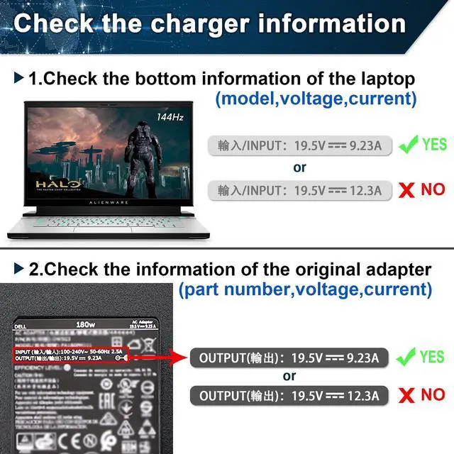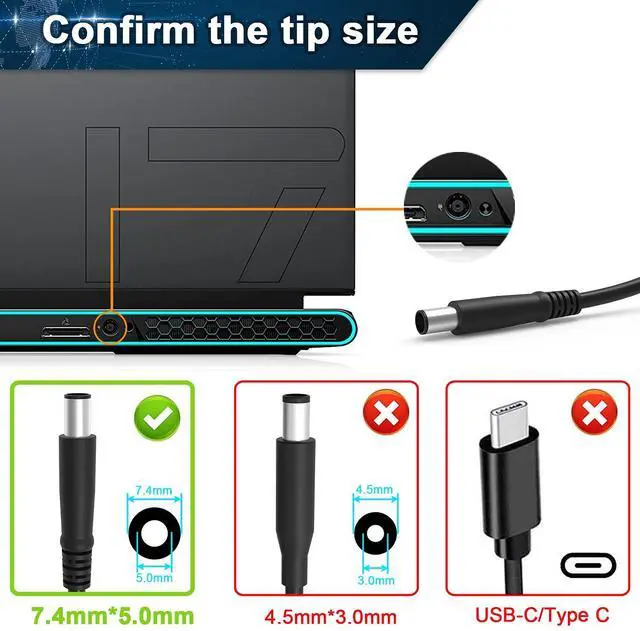 Output: 180W(9.23A-19.5V) Barrel 7.4mm tip