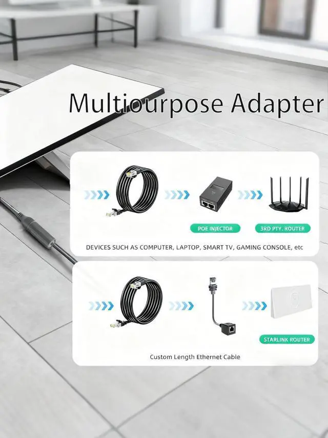 Designed Specifically for Starlink Gen 3 & Mini: This extension cable is perfectly designed for Starlink Gen 3 and Mini dishes. It allows a direct connection to standard Ethernet equipment without cutting or modifying the original Starlink cablessimple plug-and-play installation.