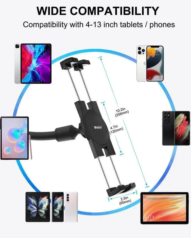 woleyi Windshield Car Tablet Mount, Car/Truck Window Dashboard Tablet Holder with Long Arm Suction Cup, Compatible with iPad Pro/Air/Mini, Galaxy Tab/Z Fold, iPhone, More 4-13" Cell Phones and Tablets