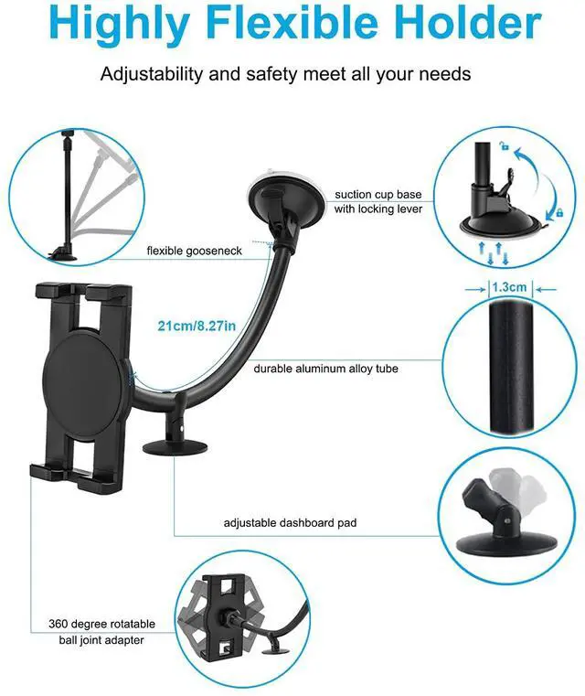 360 Degrees RotationThe ball joint design makes it easy to adjust the angle, it can be rotated & adjusted up and down for the best viewing angle, and you can hold your mobile phone or tablet vertically, horizontally or diagonally in the car. All access is easy to operate with one hand.