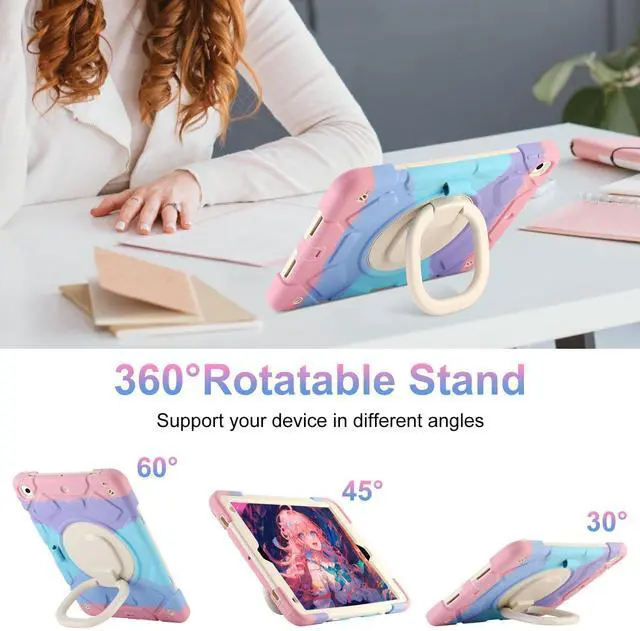 360°Swivel Folding Stand with Pencil Holder360°Rotating Kickstand provides multiple viewing angles, giving you the flexibility and convenience to use your tablet from multiple viewpoints while working, studying or playing on the go,ideal for students, teachers,engineers,cashiers and business people.The iPad 9th Gen/8th Gen/7th Gen case comes with a built-in pencil holder that allows you to easily organize and carry your pencil.