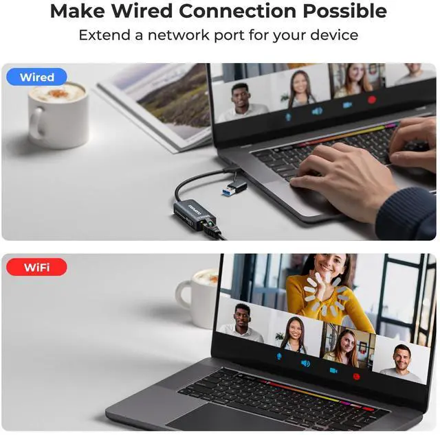 USB to Ethernet AdapterThis DUOPURUI usb to ethernet adapter adds a Gigabit RJ45 Ethernet port to your device, easily resolving issues where your computer lacks a built-in Ethernet interface or has a damaged existing port. It helps you quickly restore a stable and reliable wired network connection