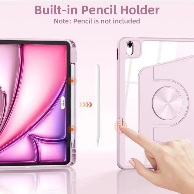Generation(2024/2022/2021/2020/2018)(Model: A2228/A2068/A2230/A2231/A2377/A2459/A2301/A2460/ A2759/A2435/A2761/A2762). NOT compatible with iPad Pro 11 inch M4/M5 2024/2025 release ^^ 360 Rotating & Detachable Strong Magnetic Back360 rotating design, which can stably support your iPad whether in a portrait or landscape stand mode in various angles with two anti-slip deep grooves. Designed with a detachable clear backshell, you can remove the cover if you don't need it, very flexible and convenient ^^ Build-in Pencil Holder & Support Pencil Pro / Apple Pencil 2nd Gen Wireless ChargingThis case has a slot for Apple Pencil Pro / Apple Pencil 2nd generation. You can carry your pen with your device wherever you go without worrying about losing them. It's also easy to remove the