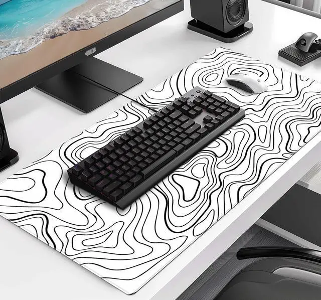Wave Pattern Laptop Anti Slip Mouse Pad, Office Accessories Decorative Stitching Edge Gaming Mouse Pad 34.5x15.7 Inches