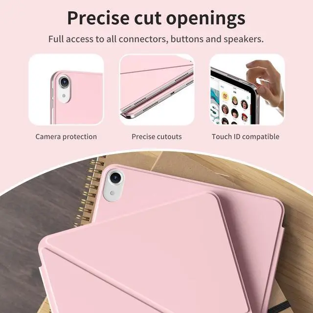 Designed for the new iPad (A16) 11th generation 11-inch 2025 (Model: A3354, A3355, A3356) and iPad 10th generation 10.9 -inch 2022 (Model: A2696, A2757, A2777). Please check the back of your iPad to find the model number. ^^ High-quality craftsmanship and an exclusive height-enhancing folding design open up new horizons for height. It reverses the inertia of the traditional iPad stand design and is a pioneer in fashion. The new frameless upgrade adds a variety of design elements, rich in details, and lets you experience a high-quality magnetic iPad case, protecting the iPad 10th/11th generation. ^^ Ultra-thin magnetic case, strong built-in magnets ensure a secure fit between the case and the iPad 10.9 /11-inch, easy to install and remove. It features super-strong magnetism and a detachable construction. When you open or close the case, the smart magnetic stripe sensor automatically wakes or puts the tablet to sleep to maximize battery life. ^^ This smart folio case easily switches between multiple modes to ensure a comfortable angle for catching up on your favorite shows or taking notes with your Pencil. It's the perfect case for the 10.9 -inch/11-inch iPad 10th/11th generation. ^^ This 10.9 -inch 2022 case for iPad 10/11-inch 2025 is made of high-quality TPU material.