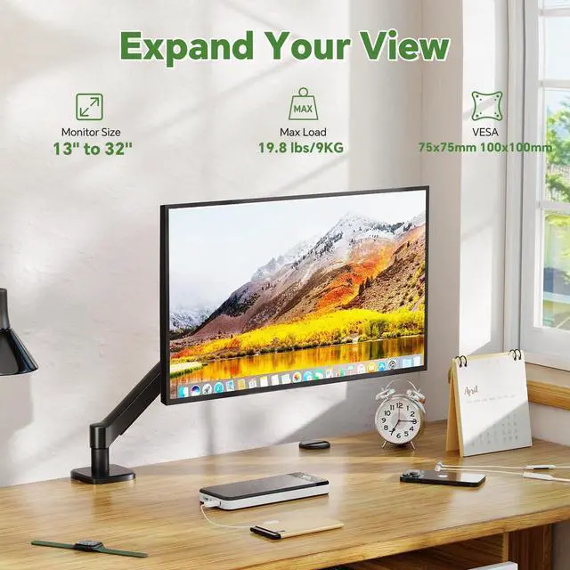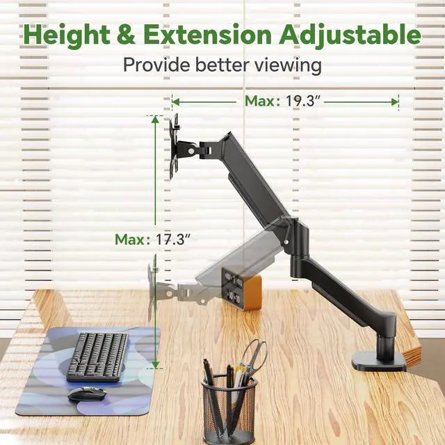 Great Compatibility: This Ekisemio single monitor stand fits 13-32 inch monitors, holds max 19.8 lbs, suitable for VESA patterns of 75x75mm & 100x100mm. Whether you are using it for office work or gaming entertainment, this monitor arm can be a reliable partner for enhancing your comfort and productivity ^^ Full Motion