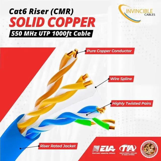^^ -: Our Cat6 riser-rated Ethernet cable is constructed with 100% solid copper conductors for enhanced durability and conductivity. It ensures adherence to ANSI/TIA 568.2 -D standards, is RoHS-3 compliant, and is backed by a FOREVER WARRANTY, providing you with peace of mind and a solid investment in your networking infrastructure.