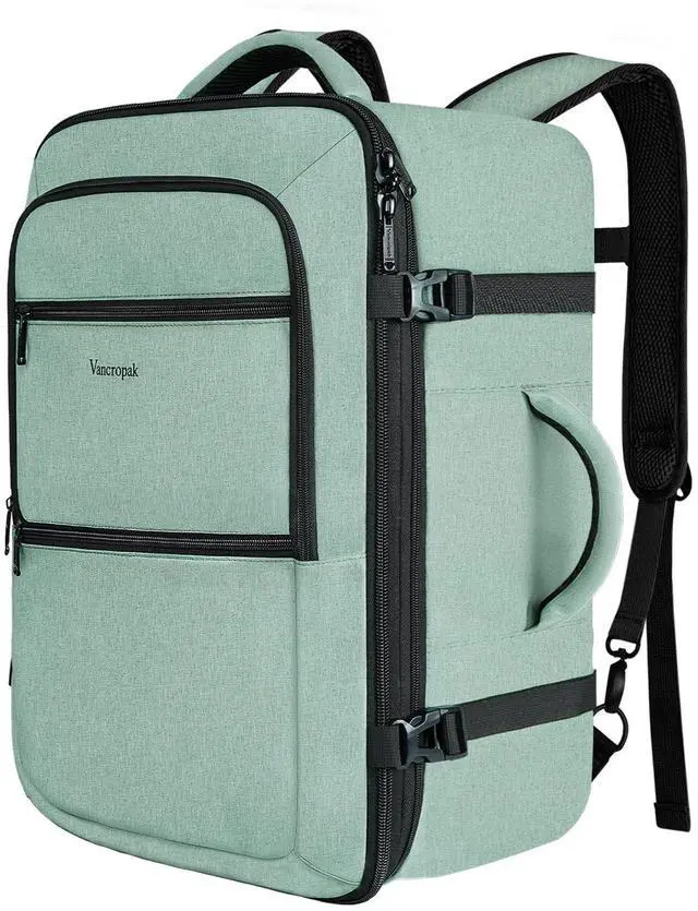 Breathable: Features a comfortable and breathable back design with thick but soft multi-panel ventilated padding, giving you maximum back support while on the move. Adjustable and breathable shoulder straps relieve the stress on the shoulder. Two padded grab handles are set on the topmost and the side of the travel backpack, making it easy to take the bag from an overhead bin