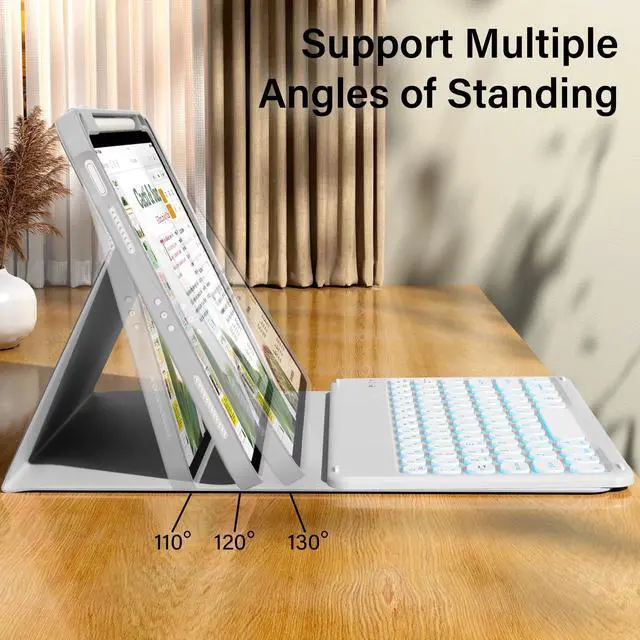 • Long Battery Life & Multi Angle SupportBuilt-in industry-high rechargeable Li-polymer battery make the wireless keyboard of this 11/10th gen iPad case with keyboard stand by for more than 3 days after 2-3 hours of full charge. The protective shell can be placed at different tilt angles to adjust the optimal viewing angle, very flexible and user-friendly.