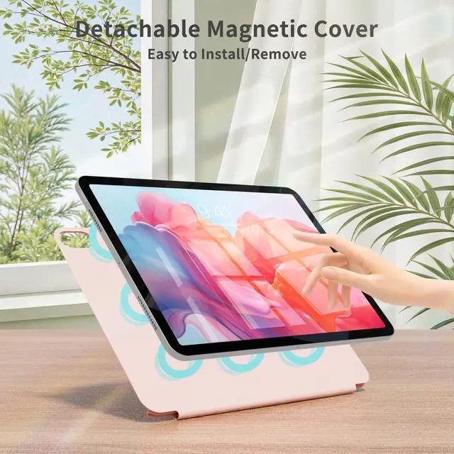 KVTVOU Case for iPad (A16) 11th/10th Generation (2025/2022, 11/ 10.9 Inch), Detachable Magnetic Attachment, Multiple Folding Stand, Slim Rebound Protection Cover, Auto Sleep/Wake, Pink