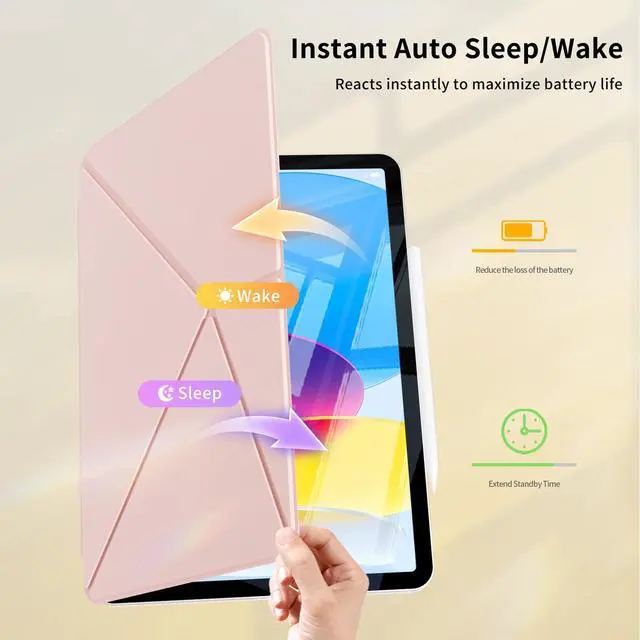 Smart Stand: The magnetic six-way iPad 10th generation case magnetic trifold cover easily folds into a stable stand for viewing or writing, which is convenient for viewing or writing. It supports horizontal and vertical screens, ensuring that you can do what you like at a comfortable angle
