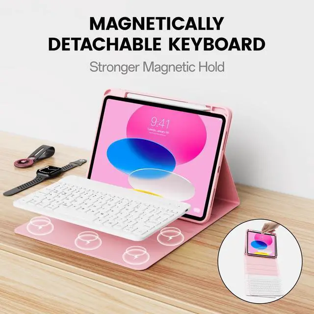 Perfectly fits models: A3354, A3355, A3356, A2696, A2757, A2777. Not compatible with any other iPad models. Please verify the model number on the back of your iPad to ensure a perfect fit. ^^ Slim Magnetic Bluetooth KeyboardExperience the ultimate versatility with our detachable, ultra-slim ( 6.2 mm) keyboard that attaches wirelessly via powerful magnets. Instantly convert your iPad into a portable laptop for work, study, or entertainment. Effortlessly compatible with iOS, Android, and Windows, The ipad a16 case with keyboard is your all-in-one productivity powerhouse. ^^ Long-Lasting Battery & Multiple Viewing AnglesThe rechargeable keyboard boasts a long-lasting Li-polymer battery. Enjoy up to 3+ days of standby time on a single, quick charge. The durable folio case allows you to set your iPad at multiple secure angles for the most comfortable typing, browsing, and video-watching experience. ^^ Built-in Pencil Holder & Durable PU MaterialThe ipad 10th generation case with keyboard features a convenient built-in pencil slot on the right side for easy storage and access (Apple Pencil not included). The premium PU leather cover is waterproof, scratch-resistant, and fingerprint-resistant, providing full protection for your iPad a16.