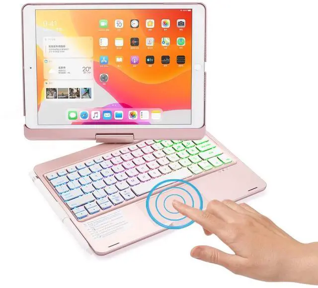 360 Rotating The touchpad Keyboard Case can rotate by 360 degree , has laptop-like well-spaced keys, backlit keys, shortcut keys and a builtin trackpad . High performance 360 degree rotary backlit touch keyboard makes your tablet works better than a laptop