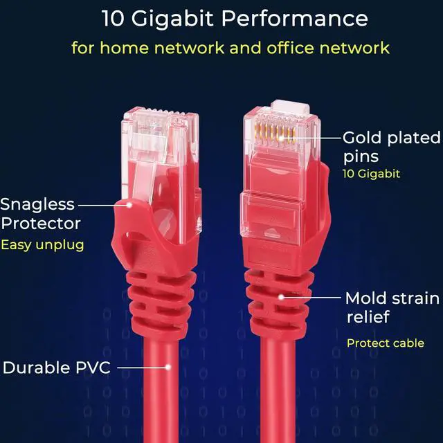 ^^ Upgrade and Clean Up RackGood size cat 6 ethernet cable 2 ft for clean wire management install. Short ethernet cable make your setup so much easier and cleaner with all same length and color. Cable patch cords is more reliable and secure than Cat5 cable network. ^^ Easy UnplugPremium quality and durable network patch cable is with fully molded strain relief connections and easy unplug clip protector. Ethernet network cable meets or exceeds Category 6 performance TIA/EIA 568-C. 2 standard.