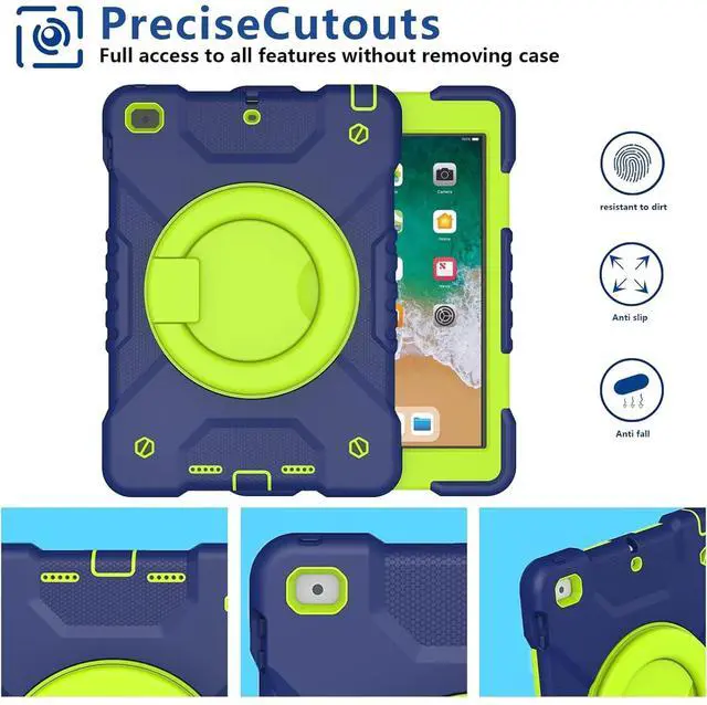Protection Shockproof Design: iPad 6th/5th Generation 9.7 inch case is made of durable hard PC + silicone, 3-layer full body protection structure provides perfect protection. 4 Corners Shock Absorption and Drop Protection - Protects your iPad 9.7 inch case 2018/2017 against scratches and accidental drops, bumps and impacts. ^^ High Quality Material and