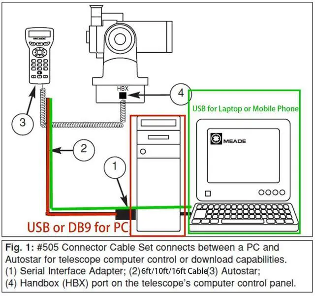 Meade 505 Control connector Cable meade 497 Autostar and AudioStar equipped models 254 Upgrade Cable, USB to RS232 4P4C Cable 16ft (DB9-4P4C-16ft) ^^