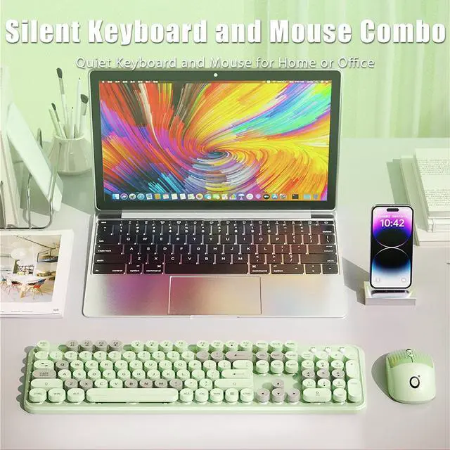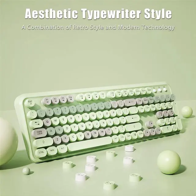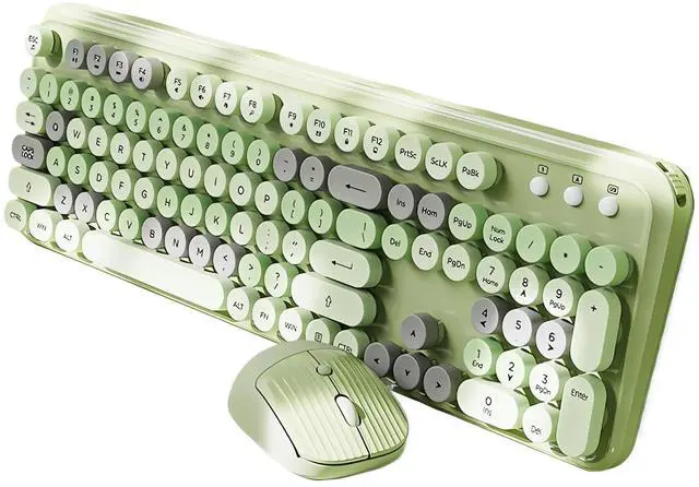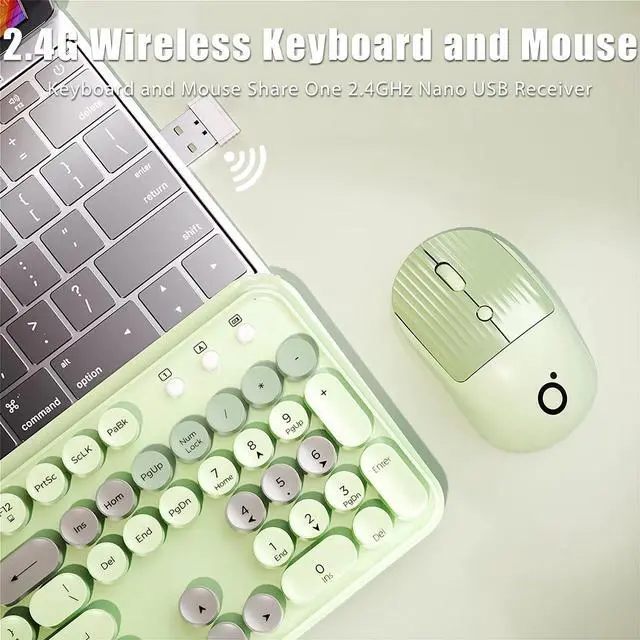 [Aesthetic Typewriter Style Combo] - The typewriter keyboard is a fusion of retro style and modern design. Cute colorful round keycaps, linear membrane switches and advanced connection technology make typing more comfortable and enjoyable. The mouse buttons have a potato chip stripe design, giving it a retro and aesthetically pleasing look. ^^ [ 2.4G Wireless Keyboard and Mouse] - 2.4G wireless connection offer anti-interference stable transmission, reliable wireless connection up to 33ft/10m away with virtually no delays or dropouts. The cordless keyboard and mouse share one 2.4GH z Nano USB receiver. Plug and play, no driver needed.