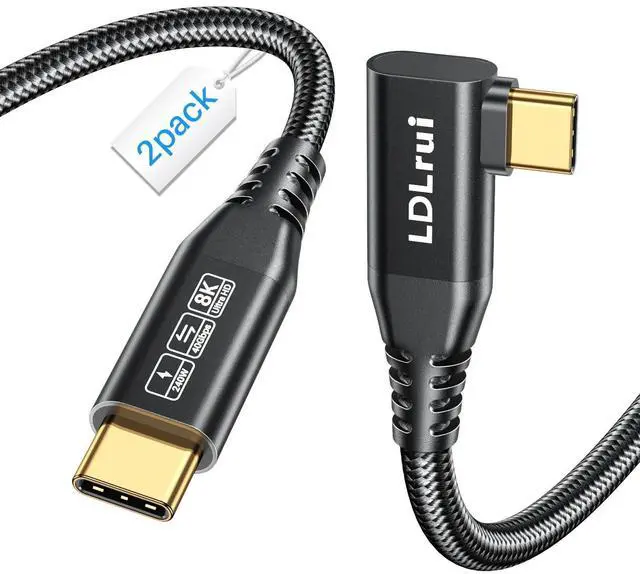 (Note: Plug and play, no driver needed but please make sure your device has a USB-C port and supports DP Alt mode) ^^ 240W PD Fast ChargingWhen paired up with a compatible charger. Charge your laptop, tablet, or smartphone with up to 240W of powerso you can get back to work faster. With an E-marker chip for safe power delivery, this c to c cable fast charging ensures efficient, high-speed charging thats safe for your device's battery. For professionals who cant afford downtime, its the ultimate on-the-go charging solution ^^ Smart 90-Degree Right-Angle DesignYour phone stays juiced up during a cross-country road trip, the 90 degree USB C cable disappearing into your car's console like it was born there. At the office, your laptop charges discreetly with the cable hugging its sleek metal frame like a perfectly tailored suit. And when you're grinding through an intense online game, the reinforced elbow bends with your controller grip no more charging cable jabbing your palm during clutch moments. (Restricted by right angle, not applicable to devices with over 5mm protective case) ^^ One is AllThe newest USB 4 cable fully supports the function of USB 4Thunderbolt 4.