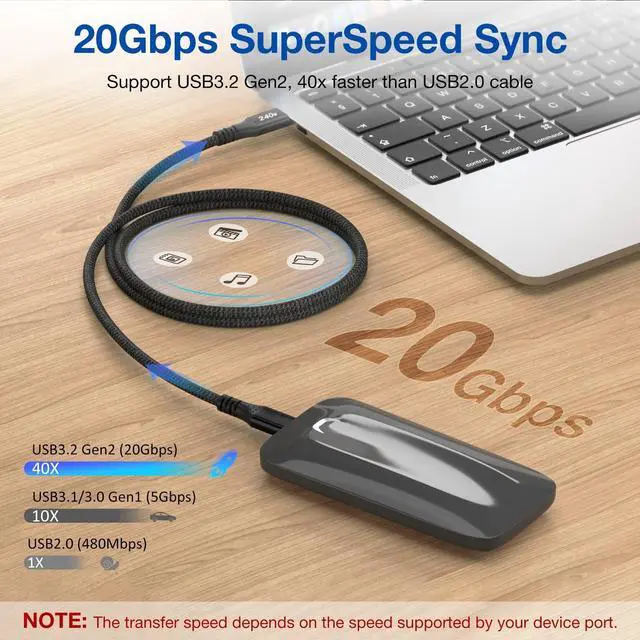 (Note: Charging speed may be dependent on the host device's charging capability). ^^ 20Gbps Data TransferOffers 20Gbps SuperSpeed data transfer, transferring an HD movie in just seconds.
