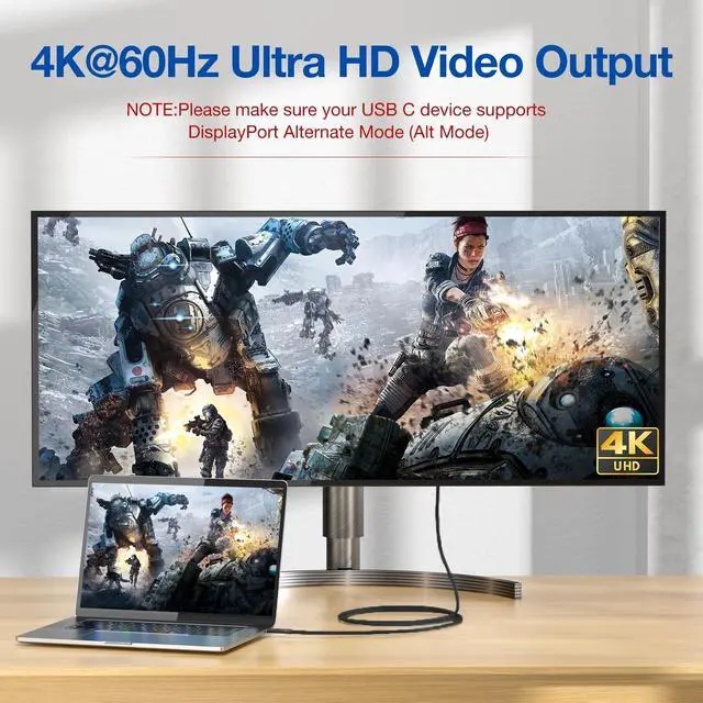 (NOTE: The transfer speed depends on the speed supported by your device port. ) ^^ 4K@60Hz Video OutputOffers 4K@60Hz (3840*2160) video output function from USB C laptops to USB C display screen or monitor, such as LG 4k, HP EliteDisplay, Dell USB-C Monitors and more.
