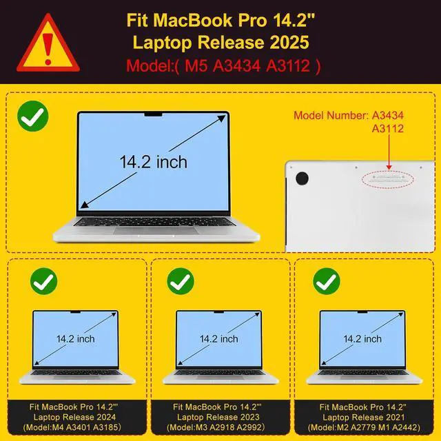 MacBook Pro 14 inch (Models: M5 A3434/ M4 A3112 A3401 A3185 /M3 A2918 A2992 /M2 A2779 /M1 A2442) -- Release in 2024 2023 2021 ^^