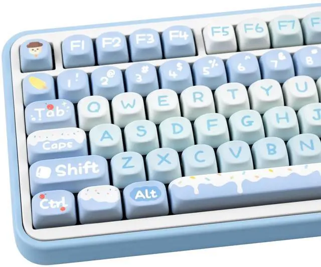 PBT Keycaps: COOMICKEY keycaps, crafted from high-quality PBT material, boast exceptional hardness that sets them apart. This superior durability allows the blue keycaps to effectively resist wear and tear caused by long-term use, ensuring they maintain their original texture and appearance2.