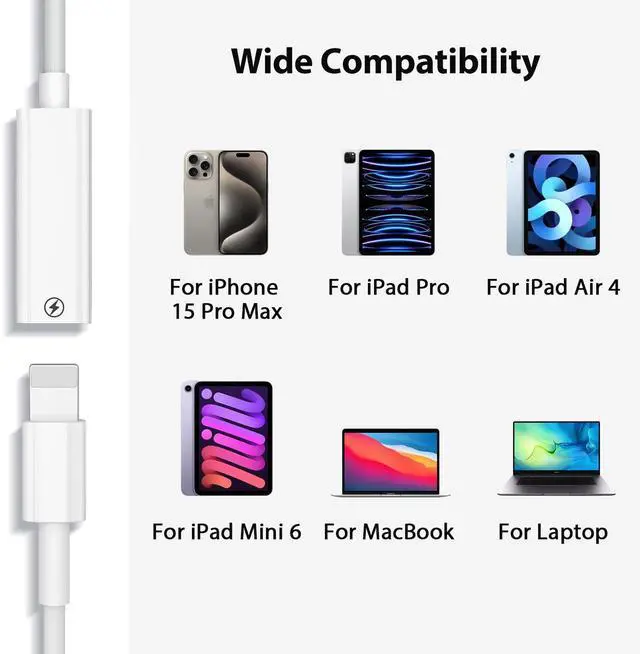 Widely Compatibility: USB C to Lightning Cable Adapter for iPhone 17/17 Pro/17 Pro Max/for iPhone Air/16/16 Plus/16 Pro/16 Pro Max/16e/15/15 Plus/15 Pro/15 Pro Max, iPad min 6, iPad Pro, iPad 10, iPad Air 4, for MacBook, for Mac, for iMac 2021 M1, and for Samsung Galaxy S25 S24 S23 S22, S21, for Google Pixel 10 9 9a 8 8a 7 7a 6 6a 5, for Oneplus and Other USB C phone devices, USB C tablets/laptops and computer with Windows 10 ^^